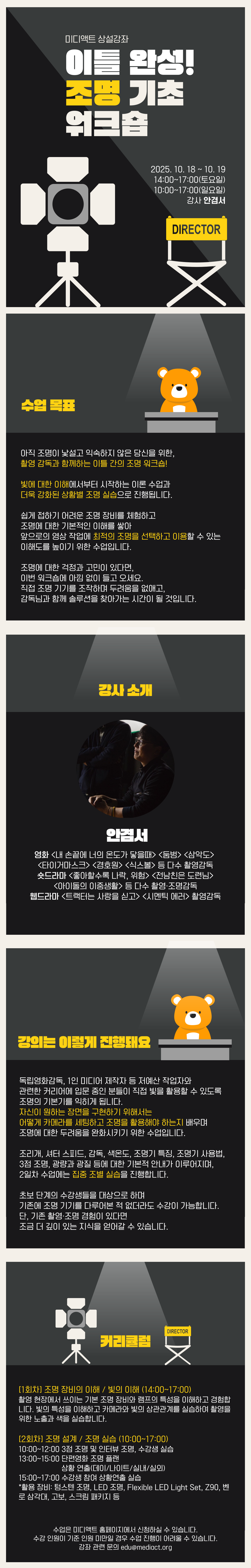 공고 작성하기이틀 완성! 조명 기초 워크숍 -10/18(토) 개강!!