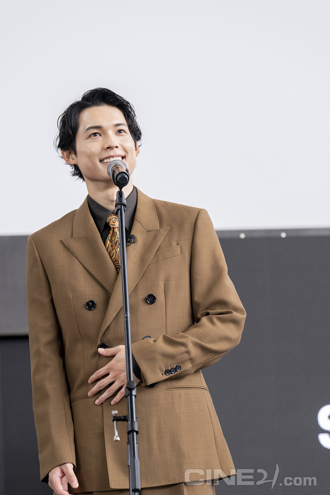 일본 보이 그룹 스톤즈 출신의 배우 마츠무라 호쿠토가 환한 얼굴로 객석에 인사를 건네는 모습. 특유의 해사한 미소에 비명 섞인 환호가 이어졌다.