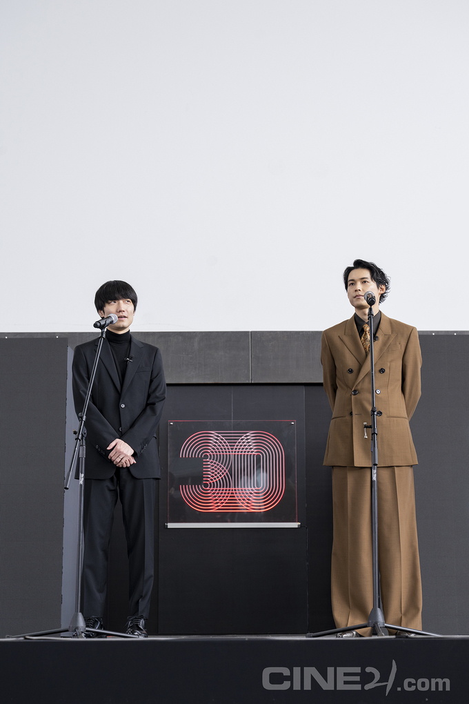 오픈 시네마 <초속 5센티미터>의 오쿠야마 요시유키 감독과 마츠무라 호쿠토. 마츠무라 호쿠토는 지난해 이와이 슌지 감독의 <키리에의 노래>로 부산을 찾았던 추억도 회고했다.