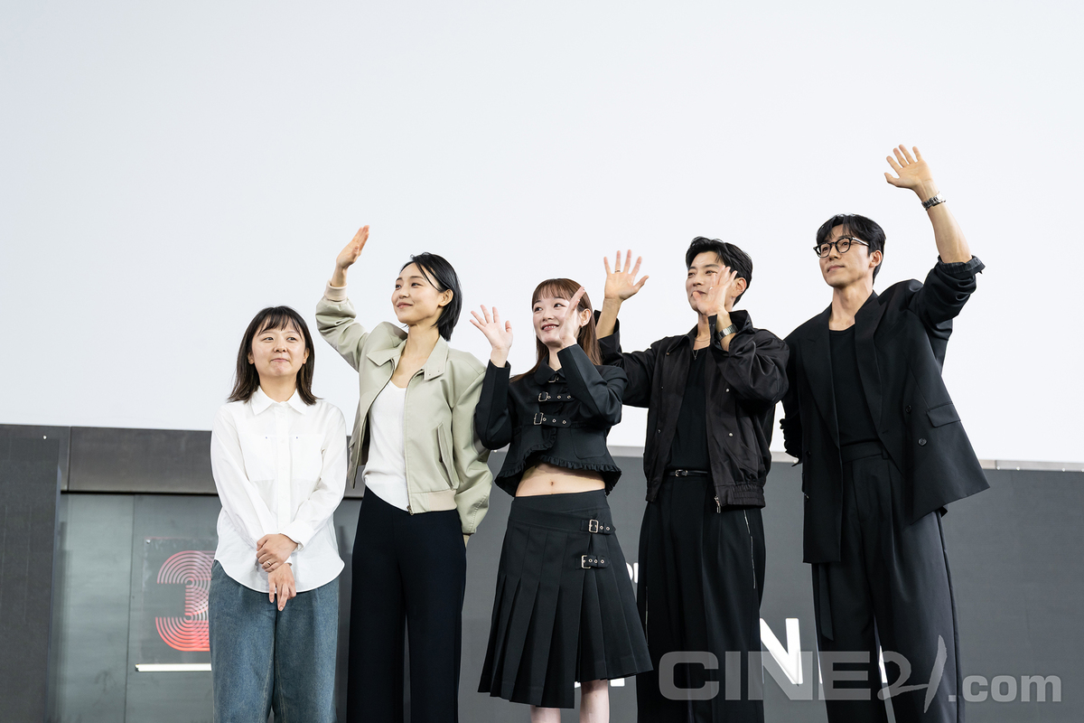 한마음 한뜻으로! 손 흔드는 온스크린 섹션의 시리즈 <당신이 죽였다> 팀의 이정림 감독, 배우 전소니, 이유미, 장승조, 이무생.
