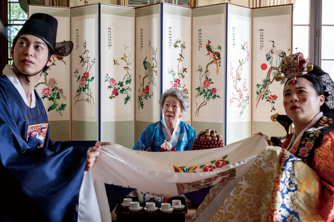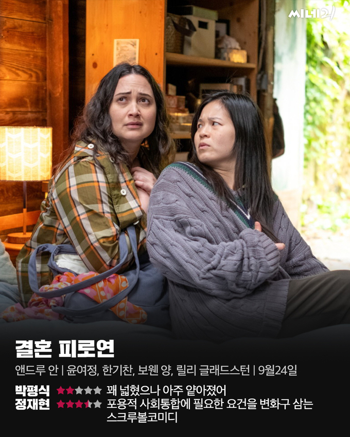 <결혼 피로연>은 리안 감독의 1993년 베를린국제영화제 황금곰상 수상작인 동명의 영화를 리메이크했다. <스파나잇> <파이어 아일랜드> 등 퀴어 무비로 자기만의 인장을 새긴 앤드루 안 감독이 각색과 연출을 맡았고, 원작의 각본가인 제임스 샤머스가 이번 영화에도 원안 제공을 넘어 공동 각본가로 참여했다. 원작 속 한 남자와 한 여자의 무용담을 두 퀴어 커플의 내러티브로 분화하고, 배경을 뉴욕에서 시애틀로 옮기는 등 구조 변화가 가시적이지만 이번 <결혼 피로연>에서 주목해야 할 지점은 원작으로부터의 시차(時差)다. 2025년은 (적어도 미국에선) 동성애자의 사랑할 권리가 보편화됐다. 무엇보다 2025년은 미국 50개 주 전역에서 동성결혼이 합법화된 지 10주년을 맞이한 해다. <결혼 피로연>은 그 시차가 진보시킨 퀴어 커뮤니티 외, 내부의 인식 변화를 각색에 효과적으로 반영한다. 이를테면 두 커플 중 가짜 이성 결혼식이 굳이 필요한 쪽은 민뿐이고, 동성혼이든 이성혼이든 결혼이 필요한 인물 또한 민뿐이다. 국제기업 총수의 손자인 민은 이성 결혼을 해야 집안으로부터 계속 지원을 받을 수 있을뿐더러 그게 누구든 미국인과 결혼해야 영주권을 취득할 수 있기 때문이다. 달리 말해 <결혼 피로연> 속 가짜 이성 결혼식을 둘러싼 야단법석은 플롯의 대수가 아니다. 영화는 오히려 네 남녀가 결혼을 위장하면서까지 사랑과 관계를 지속하려는 심리적 동인을 코미디의 주재료로 삼는다. 여기에 계급 차, 이민자의 사회 편입, 여전히 남아 있는 동성애 혐오 시선, 사회복지의 범위 등 소수자의 포용적 사회통합에 필요한 요건을 교차시키며 이야기의 레이어를 한층 풍성하게 만든다. 끝으로 <결혼 피로연>은 <미나리>에 이어 ‘윤여정풍 할리우드 할머니’의 또 다른 진수를 만날 수 있는 영화다. 자기 연민 없이 주어진 상황을 다부지게 돌파해나가고, 자신의 수비 범위 안에서만 손자와 미래세대를 염려하되 변화 중인 세상에 토 달지 않고 산뜻하게 발맞춰나가려는 자영은 이제 전 세계 모두가 아는 배우 윤여정의 페르소나에 힘입어 등장마다 분량 이상의 존재감으로 살아 숨 쉰다.